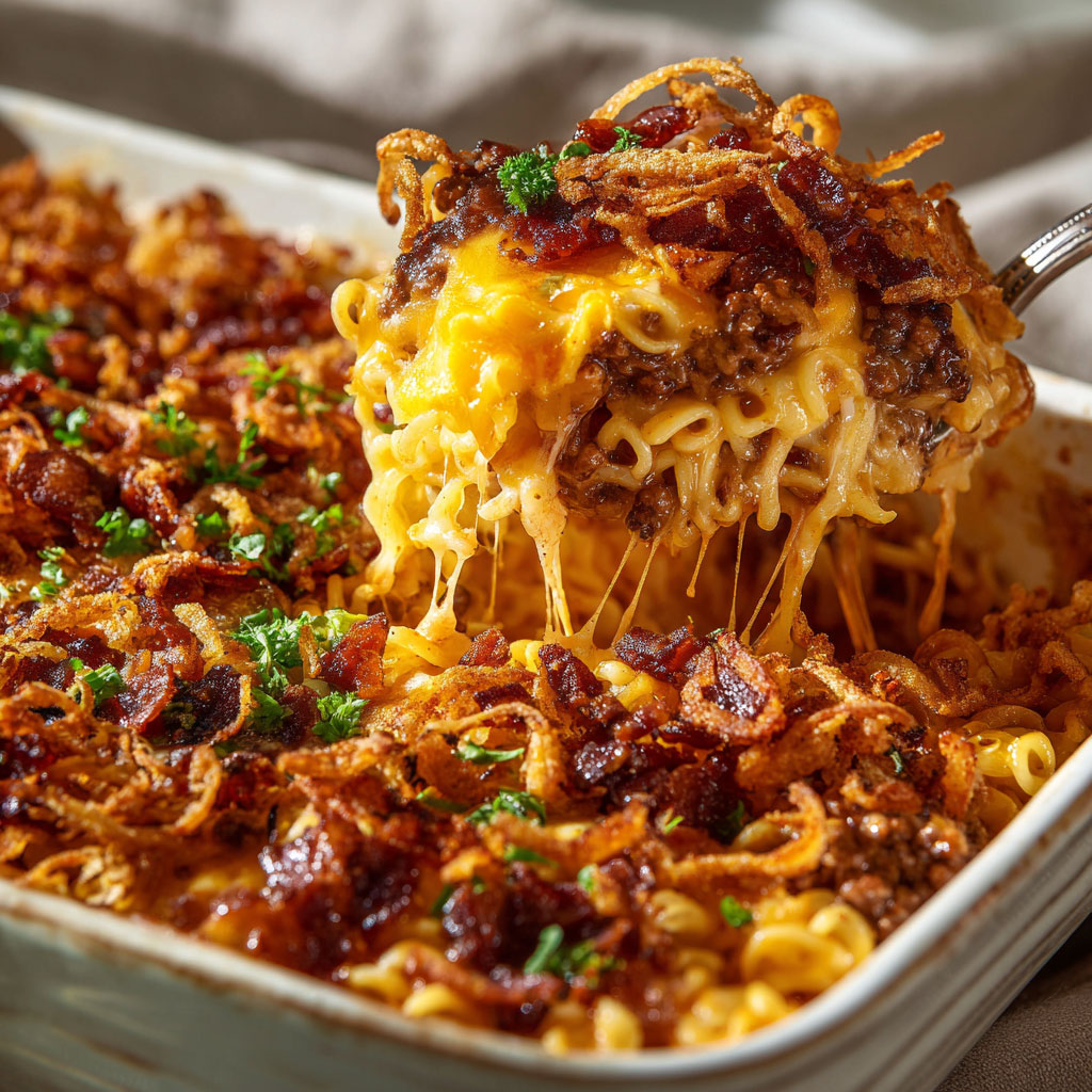 Whether you’re a fan of ramen, cheeseburgers, or BBQ, this bake pulls all those cravings into one dish. Serve it straight from the oven with a side salad, roasted veggies, or even cornbread for a complete comfort food spread that’s sure to win over both kids and adults.