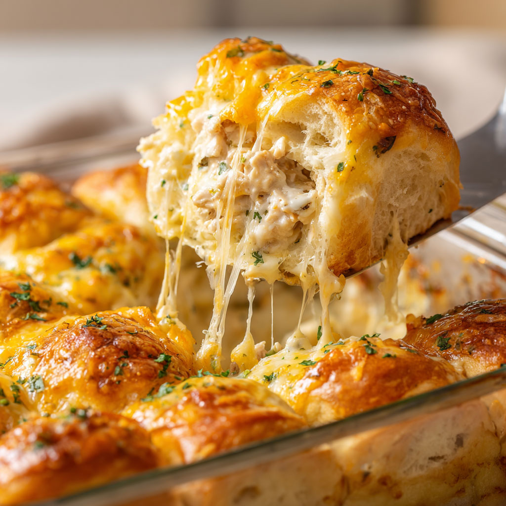 What makes this casserole irresistible is the way the creamy sauce seeps into the crescent rolls as it bakes, creating a luscious, cheesy layer of flavor. The soft, flaky rolls soak up just enough of the sauce to stay tender while keeping their buttery texture. Paired with melted cheddar cheese, the result is both satisfying and indulgent.