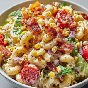It’s the kind of salad that doesn’t feel like a compromise—light yet rich, wholesome but indulgent, and packed with layers of texture. The bacon lends a salty, smoky crunch, and the cheese brings that gooey comfort we all adore.